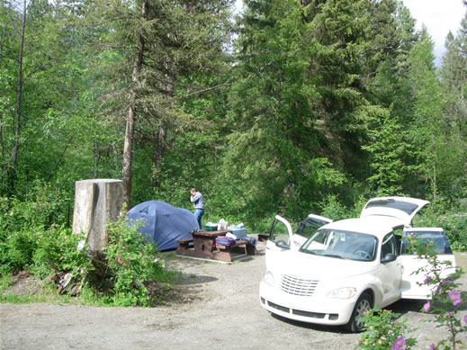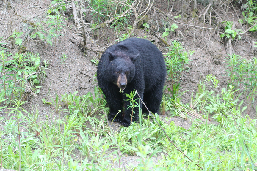 - Via hwy 1/97 door Glacier NP en Revelstoke richting Kamloops.- In Kamloops afslaan en hwy 5 in noordelijke richting oprijden. - Na een aantal kilometer de afslaan naar Paul Lake PP (rechts). activiteiten/bezienswaardigheden - Glacier NP: bezoekerscentrum en vele wandelingen. - Mt Revelstoke NP: diverse trails. NB: deze parken zijn vaak maar gedeeltelijk toegankelijk i.v.m. sneeuw. overnachten Camping in Paul Lake PP (zie foto). Foto: zwarte beer in Glacier NP in de berm van hwy 1. dag 8: Paul Lake PP - Pemberton Pemberton ligt ongeveer 300 kilometer ten zuidwesten van Paul Lake PP. Nairn Falls PP ligt iets ten zuiden van Pemberton
