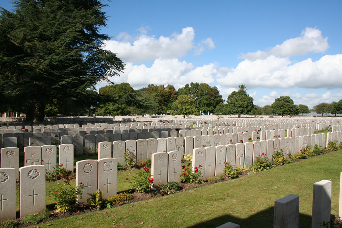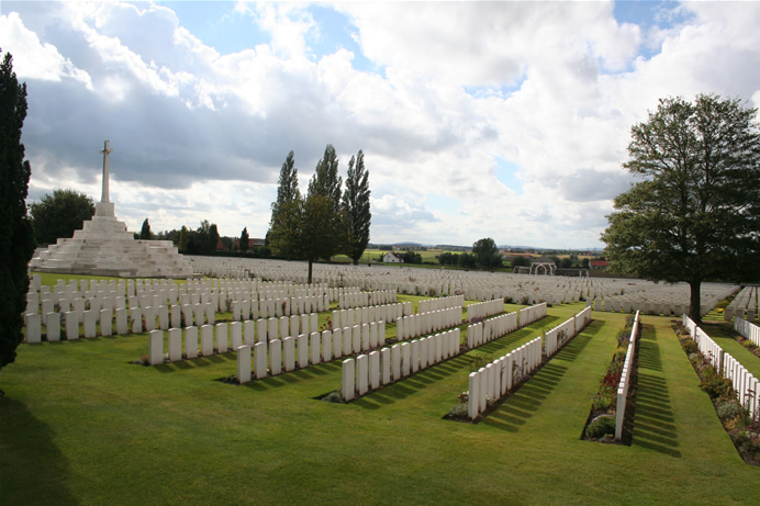 In de Westhoek raakten gedurende vier jaar oorlog bijna één miljoen soldaten verwond, vermist of gedood. Vooral Britten, Duitsers, Fransen en Belgen vonden in de Westhoek een laatste rustplaats. De helft van alle vermiste of gedode soldaten waren Britten en soldaten van de Commonwealth (het Gemenebest). Vandaag vinden we hun namen op duizenden grafstenen en op de panelen van “Missing Memorials”. Britten, Canadezen, Australiërs en Nieuw Zeelanders liggen begraven op meer dan 170 grote en kleine begraafplaatsen rond Ieper. Ook de gesneuvelde soldaten uit de kolonies die werden ingezet, liggen hier begraven: Senegalezen, Marokkanen, Algerijnen, Tunesiërs, Indiers, Sikhs en Chinezen. Deze laatste werden door de Britten als hulparbeiders achter het front ingezet. Op de begraafplaatsen van de Commonwealth wordt vanaf 40 graven het “Cross of Sacrifice” geplaatst en vanaf 1000 graven een “Stone of Remembrance” met de inscriptie “Their name liveth for Evermore”. Tyne Cot Cemetery in Passendale is de grootste Commonwealth militaire begraafplaats op het vaste land. Tijdens de 3de slag bij Ieper (Slag om Passendale) in 1917 werd hier door de geallieerden het tot puin geschoten dorp Passendale en een totaal verwoest terrein veroverd. De Britten verloren bijna 400.000 man aan doden, gewonden, vermisten en krijgsgevangenen. Oorspronkelijk was Tyne Cot een versterkte positie van de Duitse Flandern I-stelling, waar Australische troepen in oktober een eerste hulppost inrichtten. Er ontstond al snel een kleine begraafplaats met 340 bijzettingen van gewonden die ter plekke waren bezweken. Tussen 1919 en 1921 brachten gespecialiseerde “Exhumation Companies” hier vanuit omliggende velden de gesneuvelden samen. Er zijn 11.956 graven van Commonwealth militairen (slechts 3.800 zijn bij naam bekend) en enkele graven van Duitse gesneuvelden. Op de muur (Missing Memorial) achteraan de begraafplaats staan de namen gegrift van de 34.957 vermiste soldaten die na 15 augustus 1917 sneuvelden. De overige bijna 55.000 namen van vermiste gesneuvelden van vóór die tijd staan vermeld op de Menenpoort in Ieper. Hospitaalbegraafplaatsen ontstonden naast de veldhospitalen ten oosten en ten westen van Poperinge. Voor bijna iedere dag van de oorlog is er wel een soldatengraf. Het Lijssenthoek Military Cemetery in Poperinge is de grootste hospitaalbegraafplaats. Deze begraafplaats wordt ook wel “Remi Cemetery” genoemd, naar de voornaam van de boer die op de hoeve achter de begraafplaats woonde. De boerderij is er nog steeds. De begraafplaats telt 9.904 Commonwealth graven (incl. de graven van de Chinese Labour Corps) en 884 anderen, vooral Duitsers en Fransen. Vanaf 21 september 2012 is er een klein bezoekerscentrum.