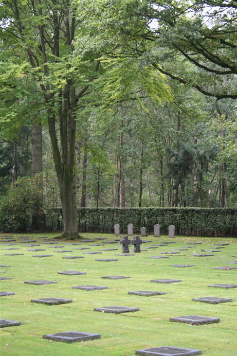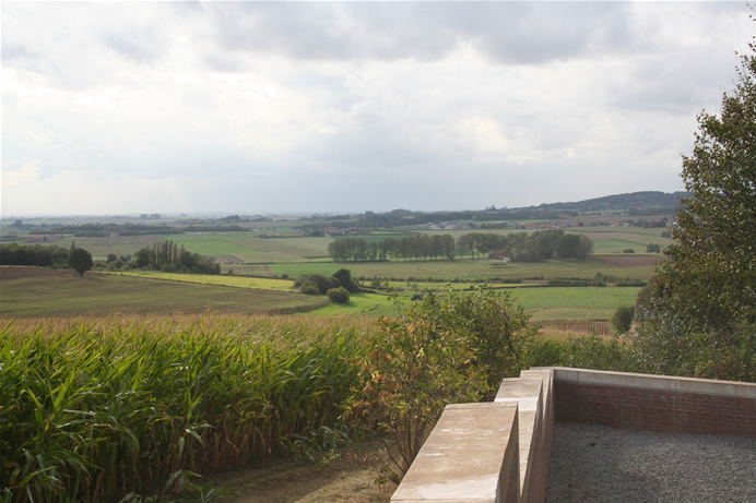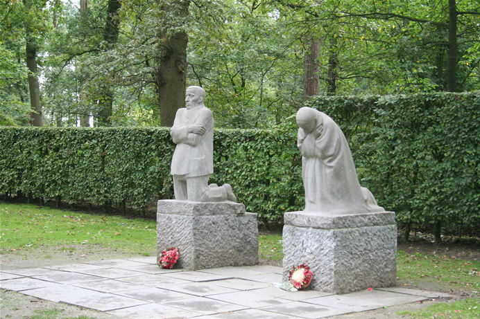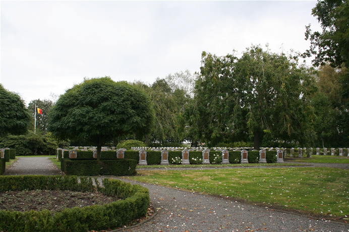 De Amerikaanse soldaten kwamen pas in 1917 aan in Europa, maar werden vooral tijdens het Eindoffensief in 1918 ingezet in België. Het Flanders Field American Cemetery in Waregem is dan ook de enige Amerikaanse militaire begraafplaats in België uit de Eerste Wereldoorlog. Het ligt op het slagveld waar de 91ste divisie vocht van 30 oktober tot 11 november 1918. Er zijn 368 graven en op de Walls of the Missing staan 43 namen vermeld. De namen van diegene die inmiddels zijn geïdentificeerd worden gemarkeerd met een rozet. Volgens het museum dat is gevestigd in de IJzertoren in Diksmuide zijn er ruim 40.000 Belgische soldaten omgekomen gedurende de Eerste Wereldoorlog, waarvan er ruim 14.000 zijn overleden als gevolg van een ziekte. Een van de Belgische militaire begraafplaatsen in de Westhoek bevindt zich in Keiem. Hier liggen de graven van 628 gesneuvelde militairen (volgens de Westhoek-website ongeveer 590) van het Belgische 8ste en 13de Linie Regiment. Een groot aantal van deze soldaten liet het leven bij gevechten om Keiem op 18 en 19 oktober 1914. Zo’n 60% van de graven op deze Belgische militaire begraafplaats herdenkt een onbekende soldaat. Onder aan de westelijke flank van de Kemmelberg ligt een Frans massagraf (Ossuaire français) met zicht op de Zwarteberg, Rodeberg en Scherpenberg. Het prachtige uitzicht geeft meteen ook inzicht in het strategisch belang van deze sector en van de Slag om de Kemmelberg. Het graf werd pas aangelegd na de wapenstilstand van november 1918. Na de Kemmelslag van april 1918 waren vele lichamen op het slagveld achtergebleven. Volgens getuigen werden er nog lichamen geborgen tot het voorjaar van 1919. Eerst werden alle onbekende Franse lichamen van de slag zelf hier samengebracht. Daarna werden ook andere onbekende Franse graven naar het massagraf gebracht. Deze begraafplaats bestaat uit 4 massagraven waarin 5.294 Franse soldaten rusten. Slechts 57 van hen zijn geïdentificeerd. Hun namen staan vermeld op de centrale obelisk. Dit gedenkteken herinnert de Franse aanwezigheid tijdens WO I en herdenkt de vele Franse verliezen tijdens de Slag om de Kemmelberg in 1918. In totaal liggen in België 134.000 Duitse soldaten uit de Eerste Wereldoorlog begraven. In 1954 werden honderden Duitse begraafplaatsen teruggebracht tot 4 grote begraafplaatsen in Vlaanderen. Nog een tiental kleinere Duitse begraafplaatsen bevindt zich in Wallonië. De Duitse begraafplaatsen zijn in tegenstelling tot de Britse heel somber. De Duitse militaire begraafplaats Vladslo telt 25.638 waaronder de jonge oorlogsvrijwilliger Peter Kollwitz. Hij was bijna 18 jaar oud toen hij in oktober 1914 sneuvelde. Diep getroffen door de dood van haar zoon, maakte Käthe Kollwitz het wereldberoemde beeldhouwwerk “Het Treurende Ouderpaar”. Het beeld werd in 1932 op het “Roggeveld” in Esen geplaatst, op de begraafplaats waar Peter initieel werd begraven. Na opheffing van deze begraafplaats werden de graven en de beeldengroep in 1957 naar Vladslo gebracht. De grafsteen die voor de beeldengroep ligt, vermeldt naast nog andere namen ook: “Peter Kollwitz Musketier † 23.10.14”. Käthe Kollwitz was een bekende Berlijnse expressionistische beeldhouwster wiens kunst door de nazi’s als “Entartete kunst” werd beschouwd en veelal uit musea en openbare gebouwen werd verwijderd. Haar kleinzoon Peter sneuvelde aan het Oostfront in 1942. Bron tekst: De Groote Oorlog in de Westhoek, Toerisme Westhoek. |