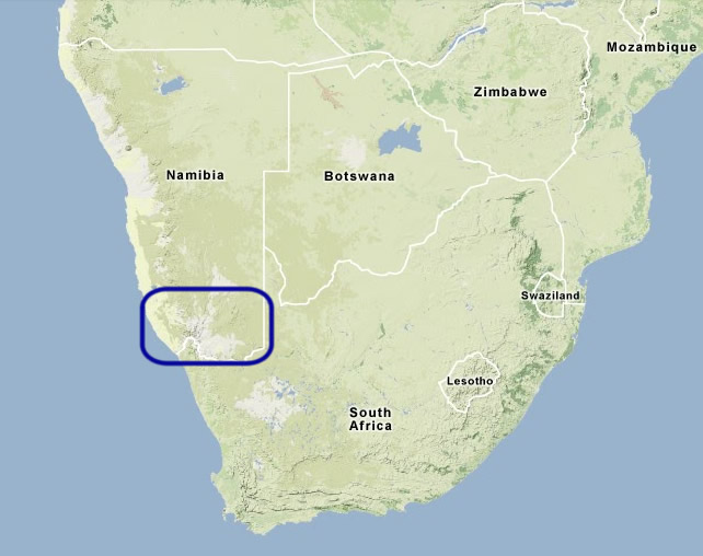 een canyon zijn die groter is. Hoe dan ook ... de Fish River Canyon mag dan kleiner zijn dan de Grand Canyon, hij is desalniettemin adembenemend! De canyon is ongeveer 10 km verwijderd van de Hobas-ingang en is bijna 550 meter diep en ongeveer 160 km lang. Afdalen naar de bodem mag; maar alleen als de hele canyontrail (85 km) wordt gelopen. "Even" naar beneden en weer terug is er dus helaas niet bij. Er zijn verschillende uitkijkpunten. De onverharde weg langs de rand is na ongeveer 8 km alleen nog voor auto's met 4WD begaanbaar. Het uitzicht is aan het eind van de middag heel anders dan in de vroege ochtend, dus als het mogelijk is om op beide momenten naar de canyon te gaan, dan is dat zeker aan te raden. Accommodatie is in de omgeving aanwezig o.a. een camping bij de Hobas ingang, verschillende lodges in Gondwana Cañon Park en een camping en lodge in Ai Ais. Entreegeld in 2007: N$ 80,- per persoon + N$ 10,- per auto. Fish River Canyon is waarschijnlijk 500 miljoen jaar geleden ontstaan o.a. doordat bewegingen van de aardplaten scheuren veroorzaakten. Ongeveer 300 miljoen jaar geleden werd de canyon verder uitgediept door zich terugtrekkende gletsjers. Het gebied maakt deel uit van het Ai-Ais/Richterveld Transfrontier Conservation Park. Het park, waarvoor de presidenten van Namibië en Zuid Afrika op 1 augustus 2003 een verdrag ondertekenden, omvat naast Fish River Canyon, ook Ai-Ais Hotsprings, Hunsberg Conservation Area en Richtersveld Nationaal Park dat in Zuid Afrika ligt. Het schijnt de bedoeling te zijn om op termijn Ai-Ais/Richterveld Transfrontier Conservation Park te verbinden met Sperrgebiet National Park en vervolgens met Lona National Park in Angola. Het park wordt ondersteund door de Peace Parks Foundation. Deze organisatie heeft tot doel parken met elkaar te verbinden zodat het wild in Afrika zo veel mogelijk vrijheid heeft om zich te verplaatsen. Op de website heeft men het over “. . . peace parks or then TFCAs. The abbreviation TFCA stands for Transfrontier Conservation Area. The Southern African Development Community (SADC) Protocol on Wildlife Conservation and Law Enforcement of 1999 defines a TFCA as "the area or component of a large ecological region that straddles the boundaries of two or more countries, encompassing one or more protected areas as well as multiple resource use areas". The Protocol commits the SADC Member States to promote the conservation of shared wildlife resources through the establishment of transfrontier conservation areas.” De Fish River is, met zijn 650 km, de langste rivier van Namibië. Hij ontspringt in het oosten van de Naukluft Mountains en stroomt naar het zuidwesten van Ai-Ais waar hij uitmondt in de Oranje Rivier. In Mariental wordt de Fish River afgedamd (Hardap Dam) waardoor er door Fish River Canyon maar weinig water stroomt. Alhoewel … zo af en toe stroomt de rivier hier toch stevig! Het Ai-Ais Hot Springs Resort is sinds de opening in 1971 een paar keer flink door deze rivier vernield. De Ai-Ais Hot Springs schijnen aan het einde van de 19de eeuw te zijn ontdekt door een Nama herder, op zoek naar verdwaalde schapen. Tijdens de oorlog tussen de Namas en de Duitsers fungeerde deze plek als basiskamp van de Duiters. In 1969 kreeg het de status van “conservation area”. Het bronwater is rijk aan fluoriden, chloriden en zwavelzouten. V ooral mensen die lijden aan reuma en zenuwziekten schijnen baat te hebben bij een bad.
