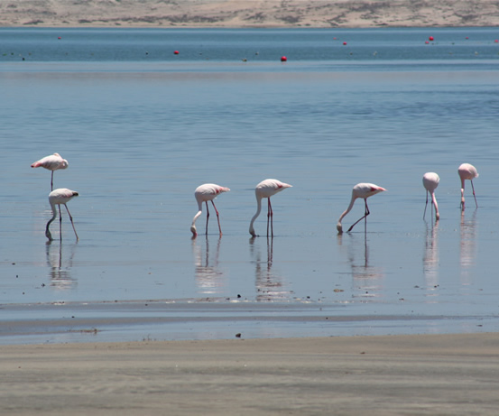 Voor diegenen die het niet zo op steden hebben voorzien, kan Lüderitz Peninsula een mooi alternatief of aanvulling bieden. Er zijn meerdere baaien, stranden en lagunes waar vele zeevogels en zeeleeuwen zijn aan te treffen. De temperatuur is er over het algemeen aangenamer dan landinwaarts maar er moet wel ernstig rekening worden gehouden met een stevige wind. Die kan af en toe zo krachtig zijn dat het niet verstandig is het schiereiland te bezoeken. De afslag naar Lüderitz Peninsula (Diaz Point) is aan de B4 ten oosten van Lüderitz en ter hoogte van de begraafplaats. De afstand naar Diaz Point is ongeveer 22 km. De wegen zijn onverhard en over het algemeen van redelijke kwaliteit. Bij Diaz Point staat een replica van het kruis dat door de Portugeese ontdekkingsreiziger Batholomeus Diaz hier in 1488 werd neergezet. Hij was op weg terug naar Portugal na een reis rond Kaap de Goede Hoop. De baai waarin hij voor anker ging, noemde hij Angra das Voltas. Later werd dat Angra Pequenha. Overigens deed Diaz niet veel meer dan dat kruis planten. Hij zag niets in de ondoordringbare Namib, evenals velen na hem. Gedurende de volgende eeuwen was er nauwelijks sprake van activiteiten. De Europeanen beperkten zich tot de walvisvaart en het verzamelen van vruchtbare vogelmest, guano, die in een meters dikke laag lag opgehoopt op de eilanden voor de kust. Iets ten zuiden van Diaz Point is er goed uitzicht op Halifax Island. Daar komen grote hoeveelheden pinguins en aalscholvers voor. Op weg naar Grosse Bucht zijn er diverse zijweggetjes (niet altijd van goede kwaliteit) naar mooie stranden en een paar zoutmeertjes. Grosse Bucht is het zuidelijkste punt van het schiereiland dat per auto te bereiken is. Als het tij laag is zijn er veel rotsen om over te klauteren om verschillende uitzichten te krijgen. Verder: - Second Lagoon: Flamingo's. - Griffith Bay: Onder andere uitzicht op Lüderitz. - Sturmvogel Bucht: Strand en roestige restanten van een walvisvaartstation.