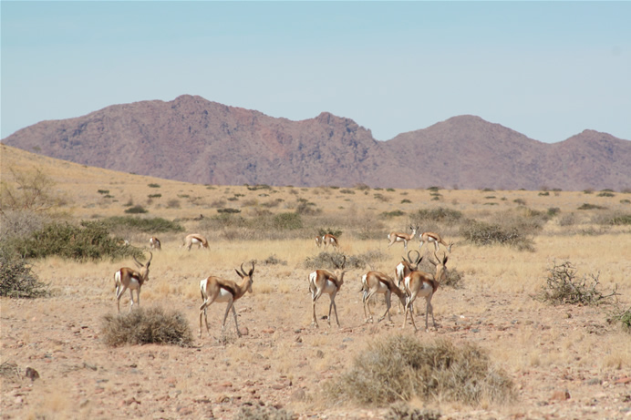 - Kolmanskop. - Lüderitz. - Lüderitz Peninsula. Desert Horse Inn (Klein Aus Vista Ranch) in Aus. dag 7: Aus - Sesriem Vanuit Aus is het, gericht rijdend, ongeveer 350 km naar Sesriem. ![]()