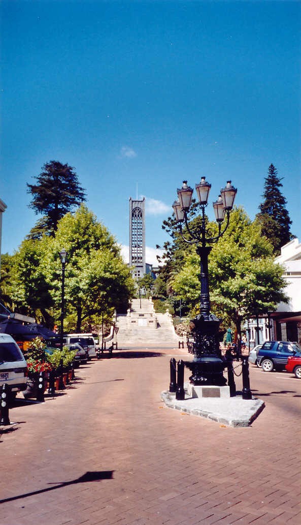 Nelson was de tweede nederzetting die door de New Zealand Company werd ontwikkeld. De eerste kolonisten arriveerden in februari 1842, maar in 1844 ging de Company over de kop. Sommige pioniers bleven en in 1853 werd Nelson de hoofdstad van een gelijknamige provincie. Een koninklijk decreet riep het stadje in 1858 uit tot tweede stad van Nieuw Zeeland. Tegenwoordig staat het bekend als een bruisend centrum van kunst, ambachten en festivals met een heerlijk klimaat. Er zijn talloze galeries, kunstnijverheidwinkels en bezienswaardigheden. Church Hill wordt gedomineerd door de Anglican Christ Church Cathedral (foto), de derde kerk op deze plek waar eerder een opzichtersbasis, een fort en immigratiebarakken stonden. De belangrijkste straat van Nelson, Trafalgar Street, loopt van de kathedraal naar Trafalgar Street South, naar Faifield Park en een kleine begraafplaats met graven van vroege kolonisten. De inscripties op de zerken geven een idee van de ellende die de beginjaren van Nelson kenmerkten. Het mooi aangelegde Anzac Park, met zijn fraaie bloemperken, hoge palmen en gedenkteken voor de gevallenen, is het voornaamste oorlogsmonument van Nelson. Een gemakkelijke wandeling beginnend bij het Botanical Reserve, waar in 1870 de eerste rugbywedstrijd werd gespeeld, leidt naar een plek die plaatselijk "het middelpunt van Nieuw Zeeland" wordt genoemd. Er is mooi uitzicht over de stad, de haven, Maitai Valley en de Maitai Rivier die door de stad naar de haven stroomt. Bron: Nieuw Zeeland Capitool Reisgidsen 2003. |