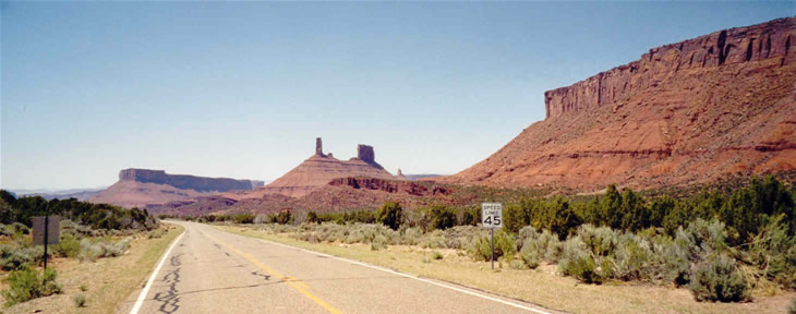 - Arches NP. - Looking Glass Rock (zie middelste foto). - Needles View. - Anticline Overlook. Devils Garden campground in Arches NP. dag 4: Arches NP en omgeving - Arches NP. - Omgeving Moab (o.a. Castle Rock zie onderste foto). Devils Garden campground in Arches NP. dag 5: Arches NP - Canyonlands NP - Dead Horse Point SP Canyonlands NP ligt ten zuidwesten van Arches NP. De parken liggen dicht bij elkaar. Tussen in, iets ten noorden van Canyonlands NP ligt Dead Horse SP. Komend vanuit Arches NP rechts af slaan en via hwy 191 naar de afslag naar hwy 313 rijden. Hwy 313 eindigt in Canyonlands NP. Een zijweg leidt naar Dead Horse SP. - Canyonlands NP. - Dead Horse Point SP. Camping in Dead Horse Point SP. dag 6: Dead Horse Point SP - Capitol Reef NP Caineville, een piepklein gehucht ten oosten van Capitol Reef NP, ligt ongeveer 125mi/200km ten westen van Moab. Vanuit Dead Horse SP via hwy 313 naar hwy 191, links afslaan en hwy 191 volgen tot aan de I-70. Deze interstate in westelijke richting volgen en deze bij exit 147 verlaten om via hwy 24 Capitol Reef NP te bereiken. Het is vanaf de I-70 44mi/71km naar Hanksville waar hwy 24 naar rechts gaat. Ergens over de helft van de I-70 naar Hanksville bevindt zich de doodlopende weg naar naar Goblin Valley SP. - Goblin Valley SP. - Capitol Reef NP. Fruita campground in Capitol Reef NP. dag 7: Capitol Reef NP en omgeving - Capitol Reef NP. - Grand Staircase-Escalante National Monument Fruita campground in Capitol Reef NP. dag 8: Capitol Reef NP - Bryce Canyon NP Bryce Cayon NP. North campground in Bryce Canyon NP. dag 9: Bryce Canyon NP en omgeving Bryce Canyon NP ligt ongeveer 140mi/225km ten zuidwesten van Capitol Reef NP. Vanuit Capitol Reef NP hwy 24 in westelijke richting volgen tot aan Torray. Daar links afslaan en via hwy 12 naar Bryce Canyon NP rijden. Kodachrome Basin SP bevindt zich ongeveer 15 km vóór Bryce Canyon NP.