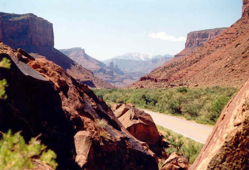 dag 1: Denver - Colorado NMColorado NM ligt ongeveer 252mi/405km ten westen van Wheat Ridge. De I-70 (foto: Frisco Mountains) volgen tot aan Fruita waar exit 19 naar het monument leidt. Colorado NM. Saddle Horn campground in Colorado NM. dag 2: Colorado NM - Arches NP Moab, dat zich ongeveer 2mi/3km ten zuidoosten van Arches NP bevindt, ligt in Utah ongeveer 90mi/145km ten zuidwesten van Colorado NM. Via de I-70 in westelijke richting en bij exit 212 de interstate verlaten (kijk uit voor overstekende prairiedogs!). Even voorbij Cisco links afslaan hwy 128 (mooie omgeving!) volgen tot aan hwy 191. Daar rechts afslaan en nog een heel klein stukje rijden naar de toegangsweg naar Arches NP. ![]() - Colorado NM. - Arches NP. Devils Garden campground in Arches NP. dag 3: Arches NP en omgeving