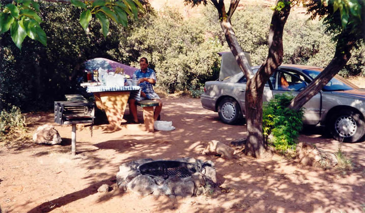 - Bryce Cayon NP.- Kodachrome Basin SP. North campground in Bryce Canyon NP. dag 10: Bryce Canyon NP Bryce Cayon NP. North campground in Bryce Canyon NP. dag 11: Bryce Canyon NP - Grand Canyon NP (north rim) - Zion NP Zion NP ligt ongeveer 84mi/135km ten zuidwesten van Bryce Canyon NP. Via hwy 12 naar hwy 89 rijden (westelijke richting) en na links af te zijn geslagen, hwy 89 volgen tot in Mount Carmel Junction. Daar via hwy 9 naar Zion NP rijden. Naar Grand Canyon NP: In Mount Carmel Junction niet afslaan maar de weg blijven volgen tot in Jacob Lake en van daar uit via hwy 67 naat het park rijden. Het was eigenlijk de bedoeling om 2 nachten in Grand Canyon NP te overnachten. Het park en een groot deel van het omringende bosgebied was echter afgesloten i.v.m. branden. Het was alleen mogelijk om bij Bright Angel Point een kijkje te nemen. - Grand Canyon NP (north rim). - Coral Pink Sand Dunes SP. - Zion NP. South campground in Zion NP. dag 12: Zion NP Zion NP. South campground in Zion NP. dag 13: Zion NP en omgeving - Zion NP. - Pipe Spring NM. - Glen Canyon NRA. South campground in Zion NP. dag 14: Zion NP - Snow Canyon SP Snow Canyon SP ligt iets ten noordwesten van St. George, op ongeveer 50mi/80km verwijderd van Zion NP. Hwy 9 volgen tot aan de I-15. Deze interstate verlaten bij exit 8 en hwy 18 volgen. het State Park ligt aan deze weg. - Grafton. - St. George. - Snow Canyon SP. Camping in Snow Canyon SP (zie foto).