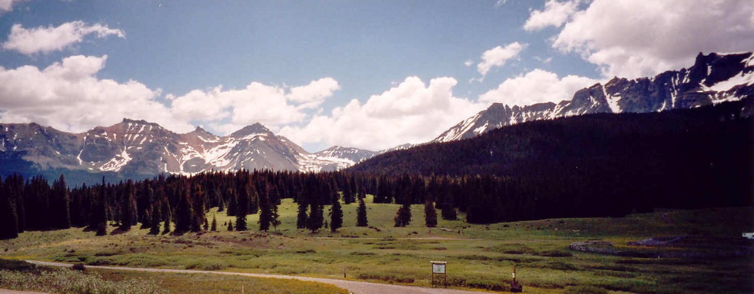 San Juan Skyway: - Dolores: Anasazi Heritage Center. - Lizard Head Pass (zie foto rechts). - Atlas Lake. - Telluride (zie foto links). - Ouray (zie foto midden). - Silverton. Holiday Inn in Pagosa Springs. Eten bij Fiesta Mexicana in Durango. dag 16: Pagosa Springs - Bandelier NM Bandelier NM ligt ongeveer 170 mijl ten zuidoosten van Pagosa Springs. Via hwy 84 in zuidelijke richting naar de grens met New Mexico. Deze weg volgen tot aan Espanola en daar hwy 30 richting Los Alamos oprijden. Vóór deze grote stad staat Bandelier NM aangegeven. Via hwy 502 en hwy 4 is het monument te bereiken. - Puye Cliff Dwellings (hwy 30 na Espanola). - Bandelier NM: wandelen, uitkijkpunten. Juniper campground in Bandelier NM. dag 17: Bandelier NM