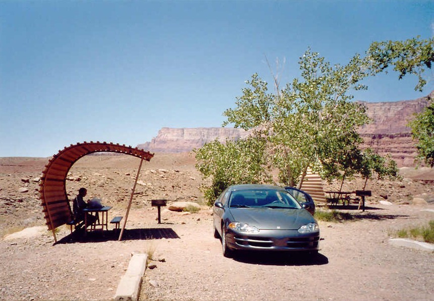 - Wupatki NM, Sunset Crater Volcano NM. - Glen Canyon NRA: Marble Canyon/Navajo Bridge, lunch op camping in Lees Ferry (foto rechts). - Vermillion Cliffs NM (foto rechtsonder). - Grand Canyon NP (North Rim): Cape Royal Road - wandelen, uitkijkpunten. Camping aan de North Rim vlak bij de lodge. dag 7: Grand Canyon NP (North Rim) - Page Page ligt ongeveer 170 mijl ten noordoosten van de North Rim van Grand Canyon NP. Vanuit Grand Canyon NP via hwy 67 in noordelijke richting naar Jacob Lake en hier Alt hwy 89 in oostelijke richting oprijden (rechts afslaan). Ongeveer 14 mijl na Navajo Bridge naar links afslaan en hwy 89 in noordelijke richting naar Page volgen.