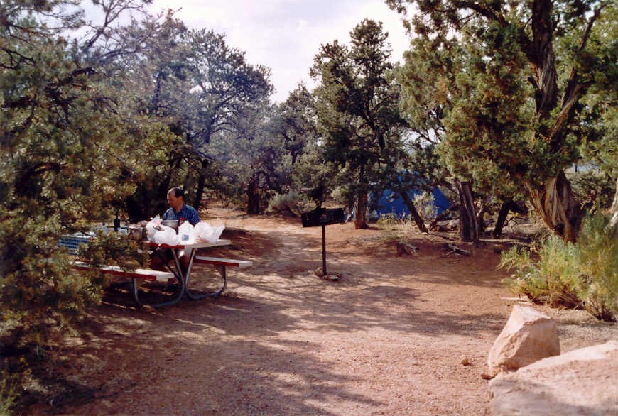 - Laguno Pueblo.- Acoma Pueblo. - El Morro NM: wandelen. Camping in El Morro NM (foto rechts). dag 2: El Morro NM - El Malpais NM - El Morro NM El Malpais NM ligt een mijl of 25 ten oosten van El Morro NM. Vanuit El Morro NM hwy 53 volgen. De oostkant is via de I- 40 en hwy 117 te bereiken. El Malpais NM: wandelen, uitkijkpunten. Camping in El Morro NM. dag 3: El Morro NM - Canyon de Chelly NM Canyon de Chelly NM ligt ongeveer 145 mijl ten noordwesten van El Morro NM, in Arizona. Vanuit El Morro NM via hwy 53 in westelijk richting tot aan de T-kruising met hwy 602. Hwy 602 in noordelijke richting volgen. Bij Galup in noordelijke richting doorrijden tot aan hwy 64 (lastig, opletten!). Hwy 64 in westelijke richting volgen tot ongeveer 6 mijl ten westen van Ganado. Daar via hwy 191 in noordelijke richting, richting Chinle. Chinle grenst aan de westkant van het monument. Canyon de Chelly NM: uitlijkpunten, wandelen, kaartjes regelen voor de canyontour de volgende dag. Cottonwood campground in Canyon de Chelly NM. dag 4: Canyon de Chelly NM - Holbrook Holbrook ligt ongeveer 130 mijl ten zuiden van Chinle. Vanuit Chinle naar hwy 191 en deze in zuidelijke richting volgen tot aan hwy 264. Daar naar Ganado rijden en verder hwy 191 in zuidelijke richting volgen. Hwy 191 komt uit op de I-40. Deze interstate oprijden richting Holbrook. - Canyon de Chelly NM: canyontour. - Hubbel Trading Post NHS (Ganado). Super 8 motel in Holbrook. Eten bij Jerry’s Family Restaurant. dag 5: Holbrook - Petrified Forest NP - Flagstaff Flagstaff ligt ongeveer 90 mijl ten westen van Holbrook. De noordingang van Petrified Forest NP beindt zich ten oosten van Holbrook en is via de I-40 te bereiken. De Park Road komt uit op hwy 180; deze vanaf de zuidingang van het park naar rechts oprijden richting Holbrook. Vanaf Holbrook de I-40 volgen in richting Flagstaff. Homolovi Ruins SP ligt aan hwy 87 dat te bereiken is door de I-40 bij exit 257 te verlaten. Meteor Crate is vanaf de I-40 te bereiken via exit 233. - Petrified Forest NP: uitkijkpunten, wandelingen. - Homolovi Ruins SP. - Meteor Crater. Super 8 motel in Flagstaff. Eten bij Sizzler. dag 6: Flagstaff - Grand Canyon NP (North Rim) De noordkant van Grand Canyon NP ligt ongeveer 215 mijl ten noorden van Flagstaff. Vanuit Flagstaff via hwy 89 in noordelijke richting en ongeveer 24 mijl ten zuiden van Page Alt hwy 89 oprijden richting Marble Canyon/Navajo Bridge. Deze weg volgen tot aan Jacob Lake; Vermillion Cliffs NM grenst aan de noordkant van deze weg. Vanaf Jacob Lake via hwy 67 in zuidelijke richting tot aan de ingang van het park.
