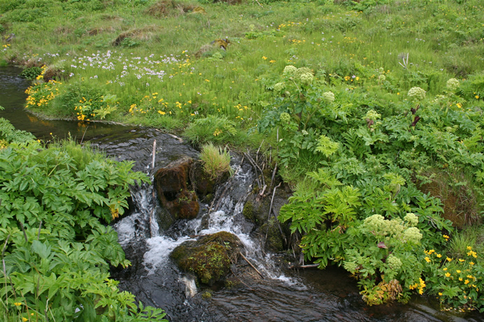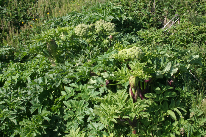 ![]() Engelwortel komt voor in de gematigde en subpolaire gebieden van het noordelijk halfrond. Deze plant wordt 60 tot 180 centimeter hoog. De bloemen zijn wit, talrijk in platte tot 15 centimeter brede schermen. Ze worden veel bezocht door kevers en zweefvliegen. De bladeren zijn donkergroen, drievoudig geveerd, met eironde, onregelmatig getande blaadjes.Het is een overblijvende plant die is aan te treffen aan waterkanten, natte graslanden en broekbossen. De plant heeft holle, purper gestreepte stengels en grootvormige, gegroefde, aan de voet sterk opgeblazen bladstelen. Sommige mensen zijn gevoelig voor het sap dat, in combinatie met zonlicht, huidirritaties veroorzaakt. Foto's: IJsland 2011. De gewone engelwortel (A. sylvestris) en de grote engelwortel (A. archangelica) lijken heel veel op elkaar. Laatstgenoemde is aromatisch en heeft grondbladeren met ronde, buisvormige (i.p.v. gootvormige) steel.