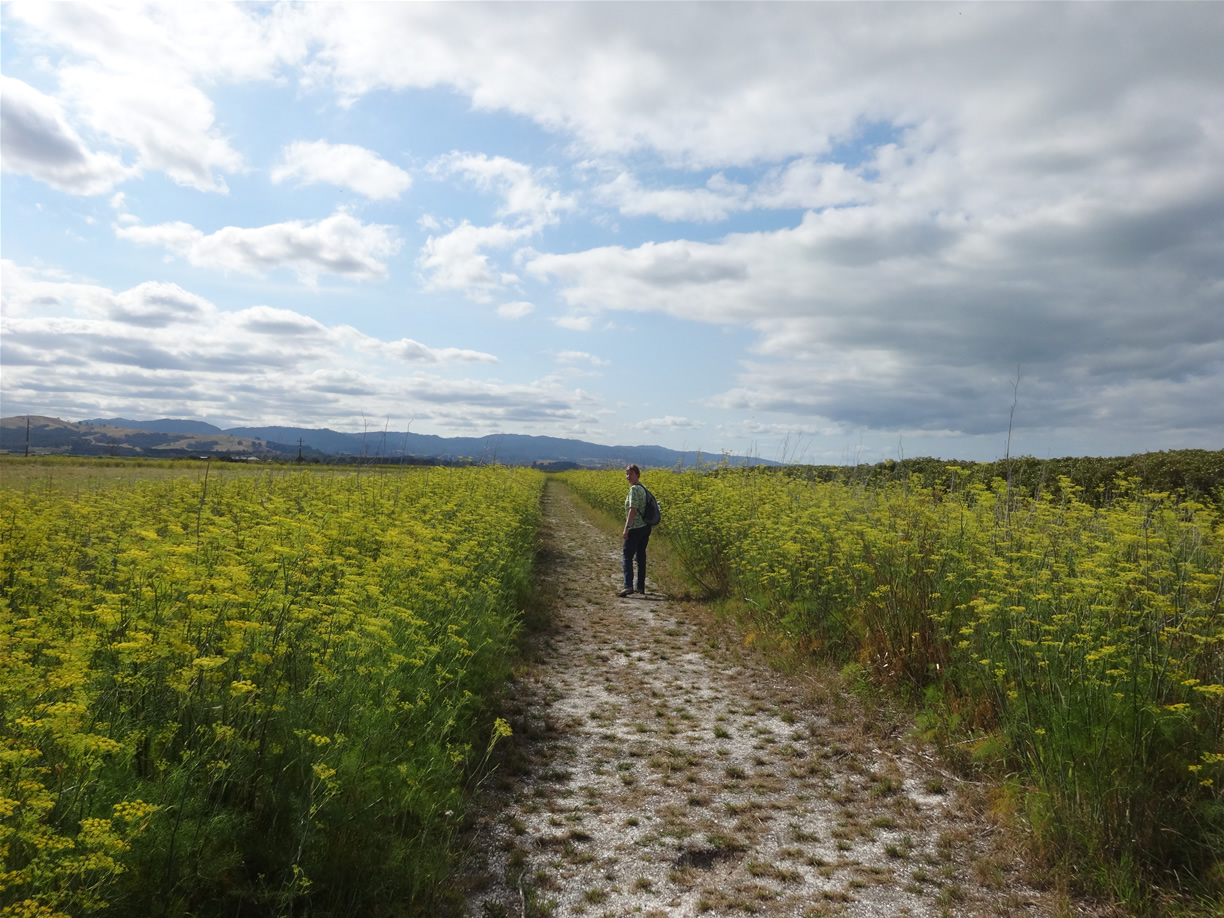 venkelplant kan tot 2,5 meter hoogte groeien. Venkel is oorspronkelijk afkomstig uit Azië en werd via middeleeuwse handels-routes naar Europa vervoerd. De zaden staan al eeuwenlang bekend om hun geneeskrachtige werking. Ze worden op verschillende manieren tot medicijn verwerkt. De krachtigste vorm daarvan is de venkelolie, die uit de zaden wordt geperst. Een andere mogelijkheid is het trekken van extracten (bereid als thee) uit de zaden. De Europese kolonisten hebben om culinaire en medicinale redenen venkel in Nieuw Zeeland geïntroduceerd. Een van de eerste plekken waar het naar toe werd gebracht is waarschijnlijk Codfish Island waar zich een gemeenschap van Maori en Europeanen bevond. Een eeuw na de introductie werd gemeld dat venkel weelderig groeide, verspreid over het gehele eiland. Bron tekst: Wikipedia & wildpicnic.blogspot.com (april 2014). |