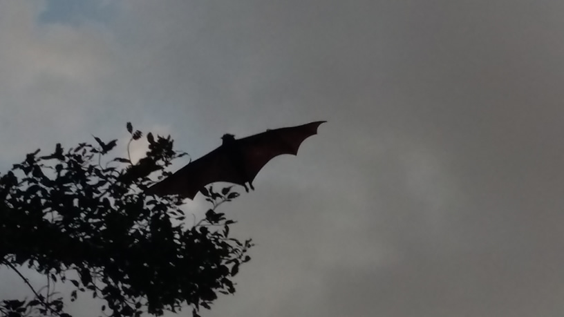 familie: Emballonuridaeonderfamilie: Emballonurinae (schedestaartvleermuizen) geslacht: Rhynchonycteris soort: R. naso - langneusvleermuis (Costa Rica) geslacht: Saccopteryx soort: S. bilineata - tweestrepige zakvleermuis (Costa Rica) familie: Pteropodidae geslacht: Pteropus soort: P. alecto - zwarte vleerhond, black flying fox (Australië) soort: P. conspicilladus - bebrilde fruitvleerhond, spectacled flying fox (Australië) soort: P. giganteus - vliegende vos (India) soort: P. poliocephalus - grijskopvleerhond, grey headed flying fox (Australië) soort: P. scapulatus - kleine rode vleerhond, little red flying fox (Australië) foto: vliegende vos Het is niet zeker welke van de bovenstaand genoemde vleerhonden wij in Australië hebben gezien. We zagen ze in Daintree NP en bij Zillie Falls, in het noorden van Queensland. Volgens de Department of Environment and Science (klik hier) vormen deze 4 soorten kolonies aan de kust van Queensland. Het was waarschijnlijk niet de grijskopvleerhond en waarschijnlijk ook niet de kleine rode vleerhond. De grijskopvleerhond komt namelijk zo noordelijk niet voor en rode kleine vleerhonden vormen grotere kolonies, dichter bij de grond. Volgens het Animal Diversity Web vormen de vleermuizen, qua aantal soorten, de tweede grootste groep zoogdieren. Er zijn ongeveer 925 levende soorten vleermuizen en dat is zo'n 20% van alle levende zoogdiersoorten. Alleen de groep van knaagdieren omvat nog meer soorten. |